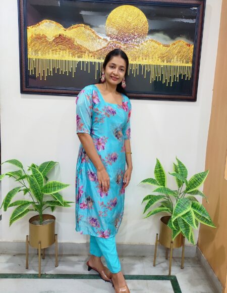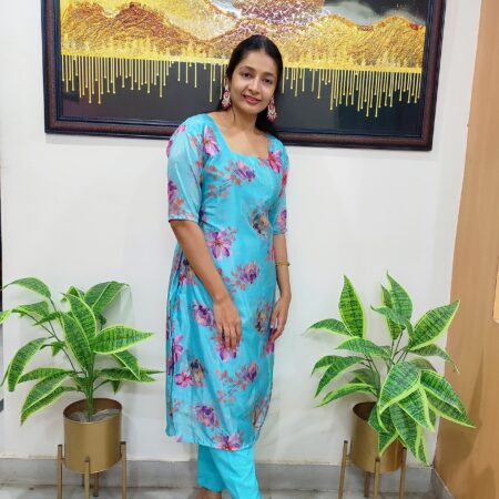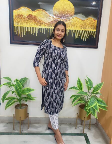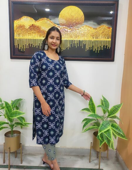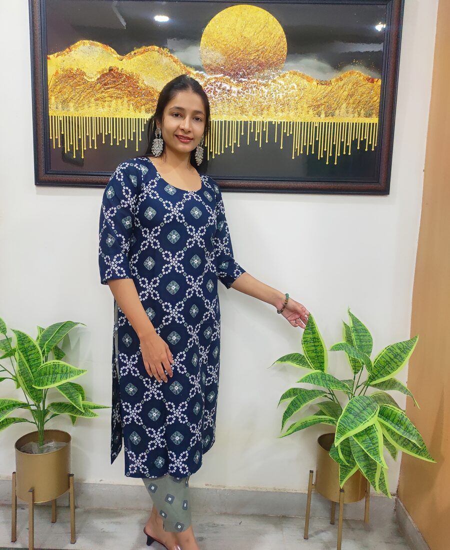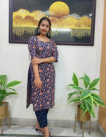 Dark blue multicolour Printed Cord Set (Kurta + Bottom)