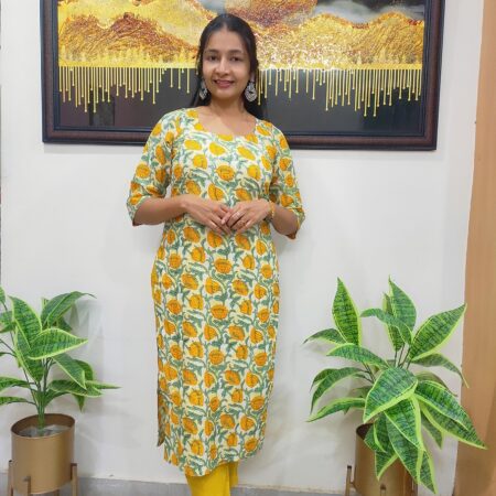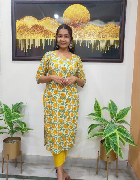 Cool Breeze Mustard Yellow Floral Printed Cord Set (Kurta + Bottom)