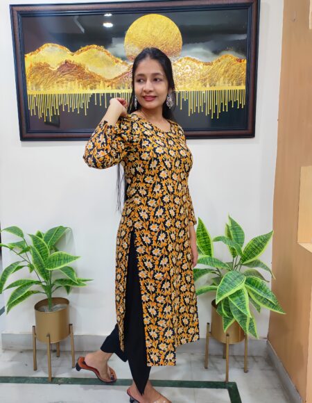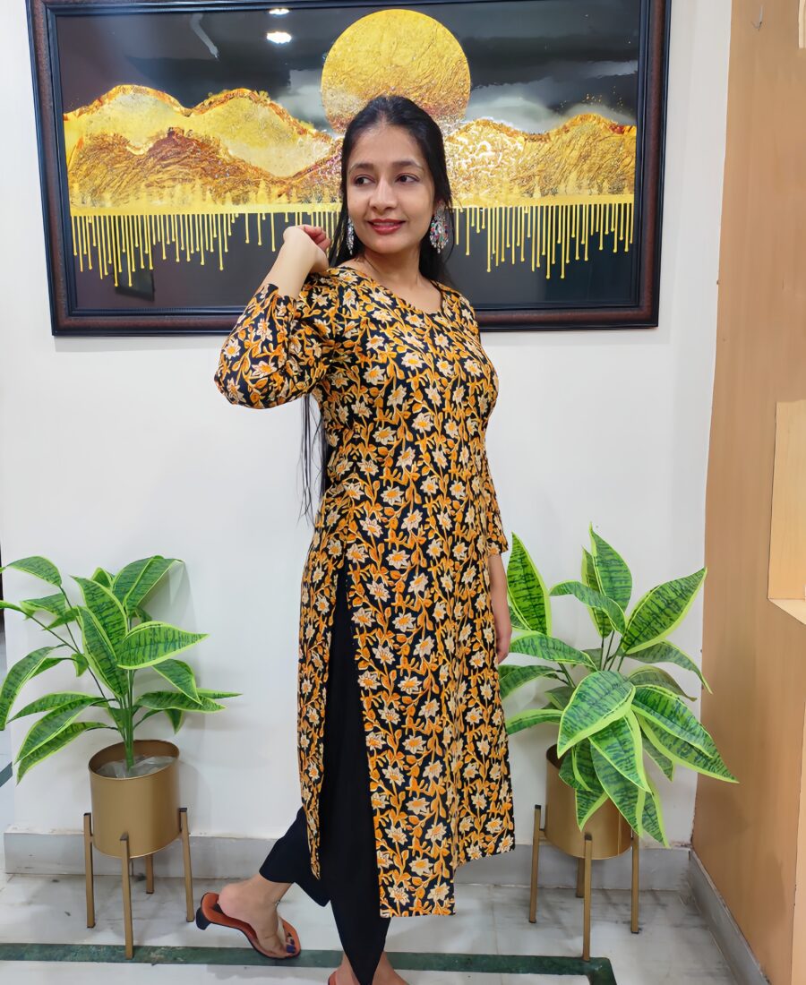 Black and Yellow Floral Printed Cord Set (Kurta + Bottom)