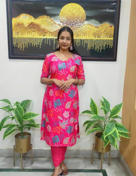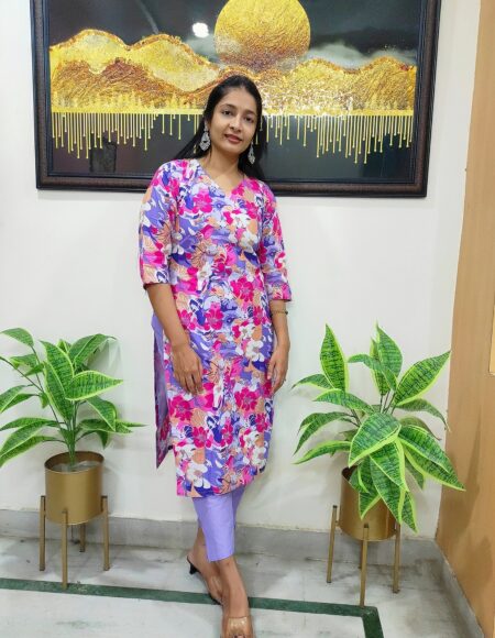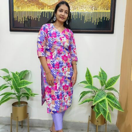 Vibrant Lavender Multicolour Printed Cord Set (Kurta + Bottom)