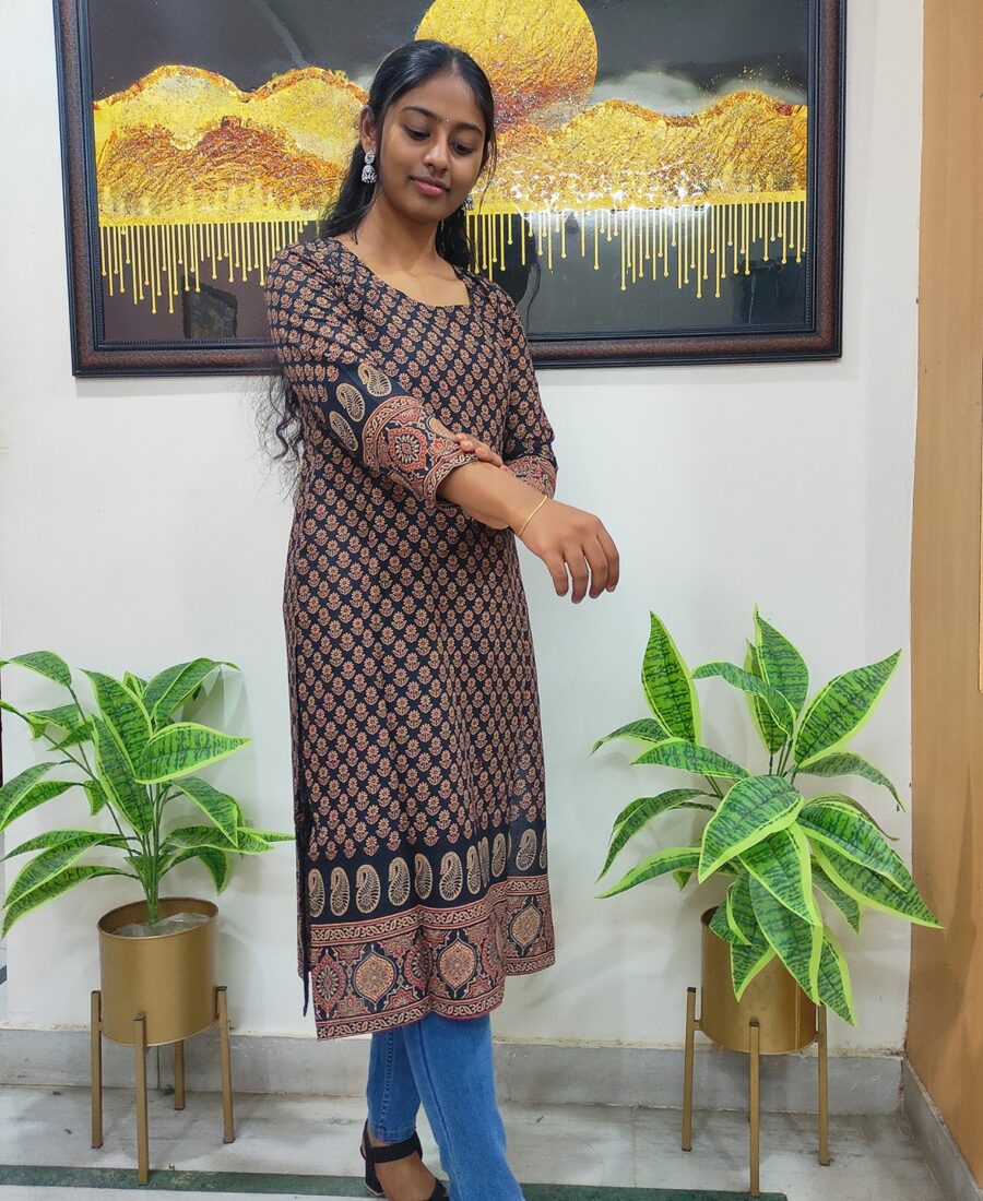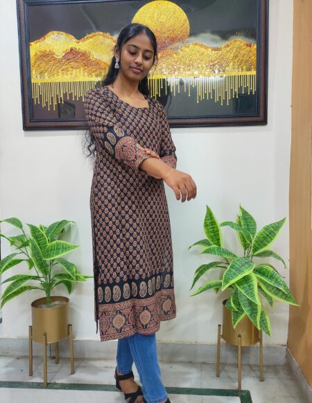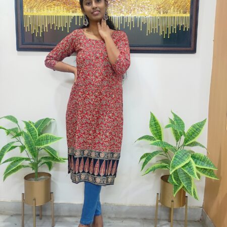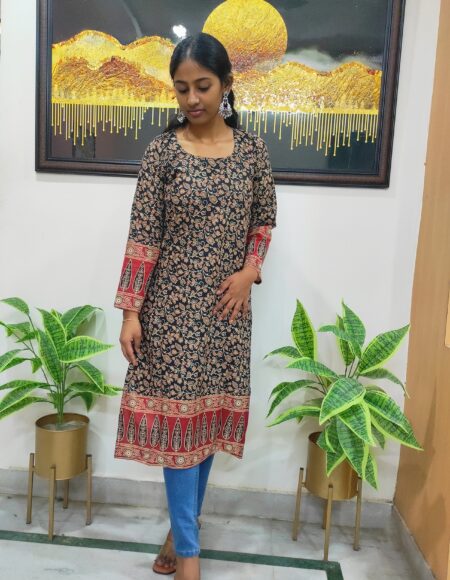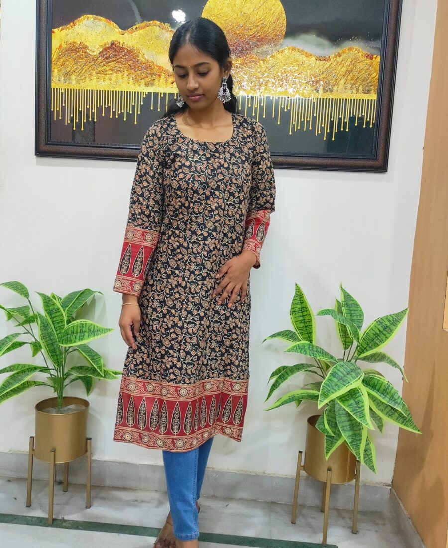 Black and Red Multicolour Cotton Full Sleeves Kurti