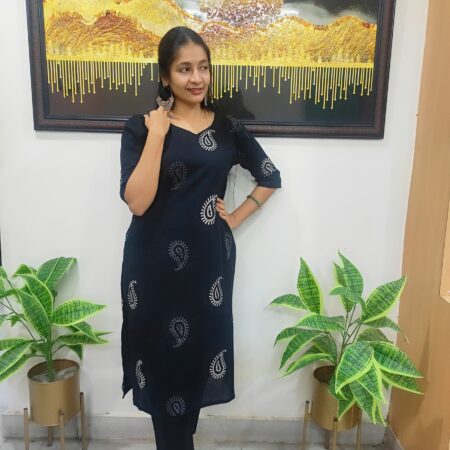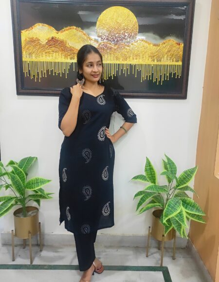 The Midnight Black Mango Print Cord Set (Kurta + Bottom)
