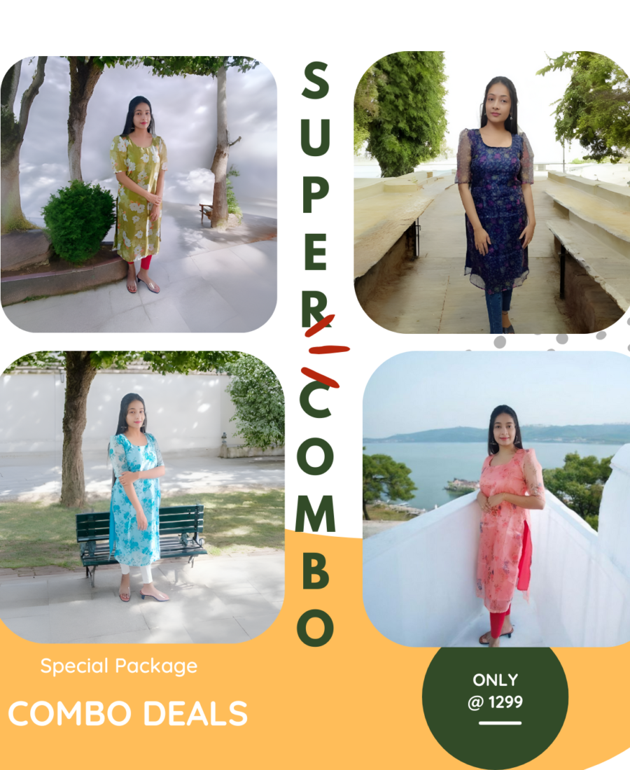 Grab Combo of 4 Organza Kurtis @ Just ₹1299!