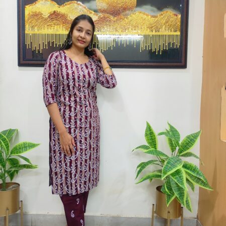 Elegant Meroon and white Mango Printed Cord Set (Kurta + Bottom)