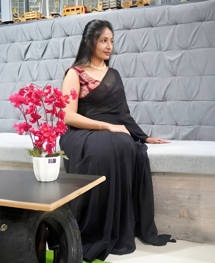 Georgette Black Custom Tassel-Stitched Saree with a Tailored Ajrakh Print Padded Blouse.