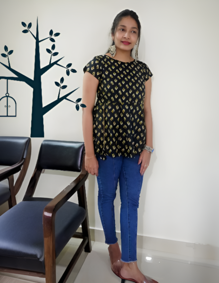 Timeless Jet Black Printed Peplum Cotton Top