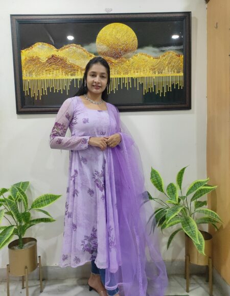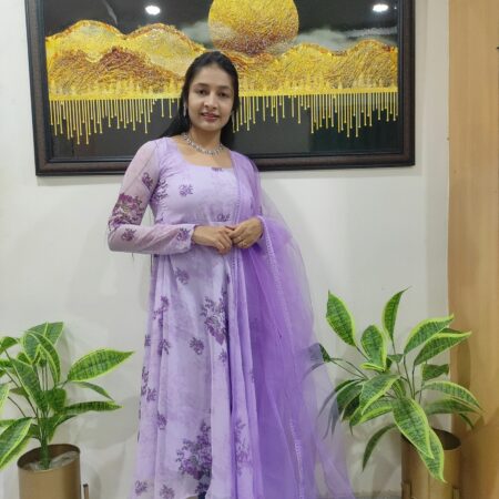 Purplish-Blue Bandhani Print Anarkali with Duppatta