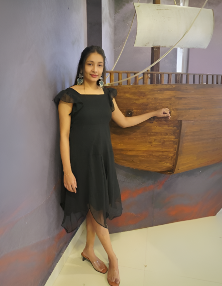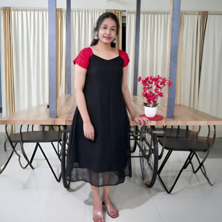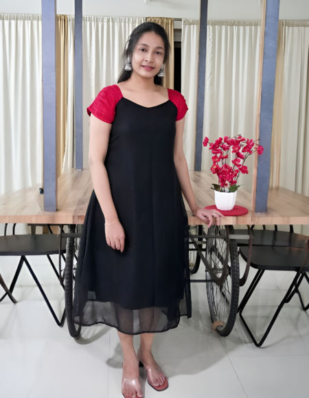 Refined Jet Black & Rosy Pleated Ensemble A-line Frock