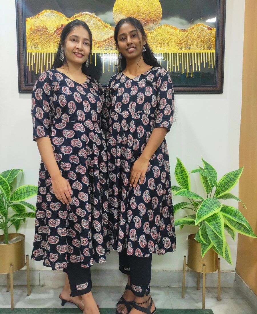 Black and Yellow Floral Printed Cord Set (Kurta + Bottom)