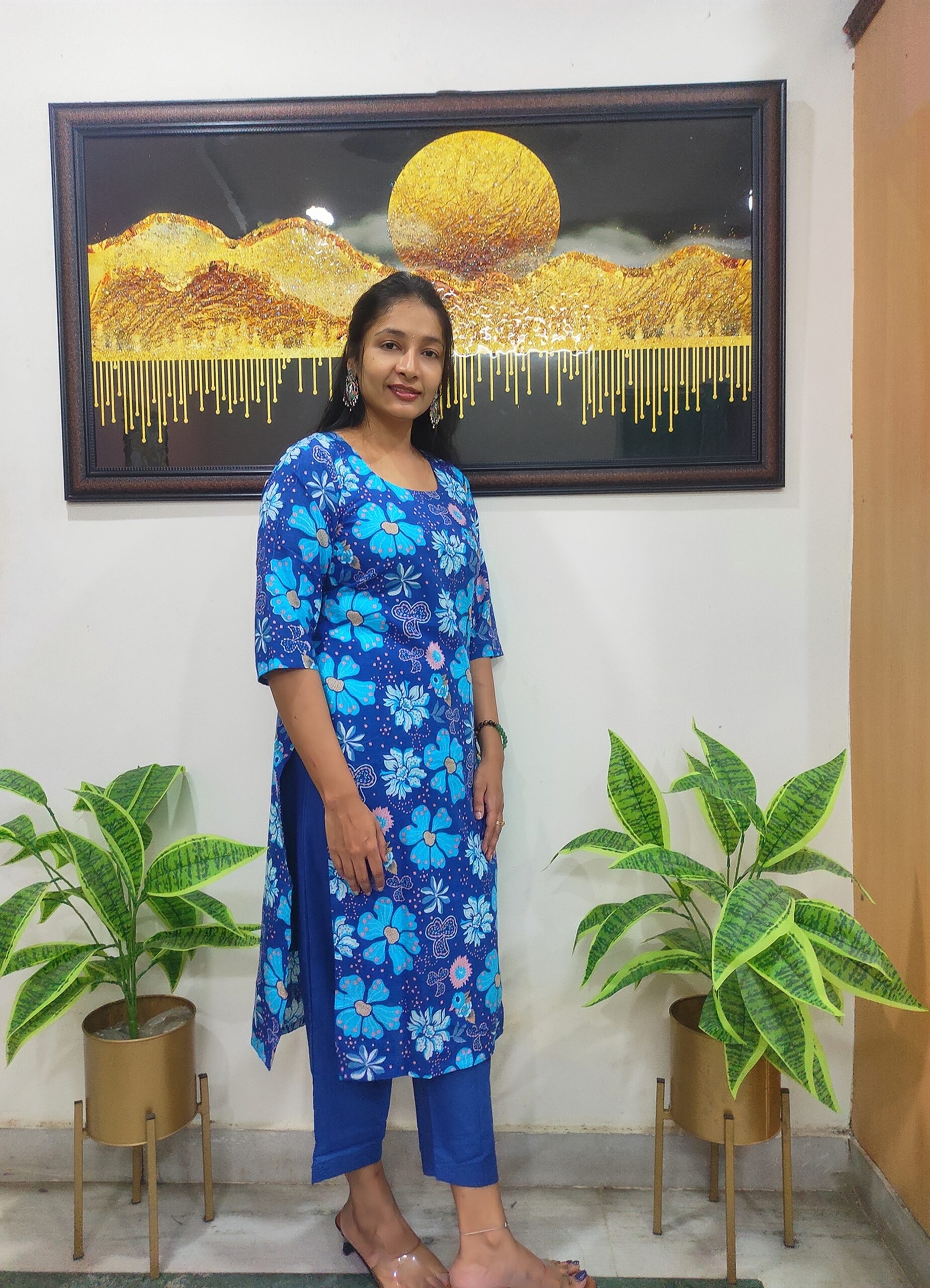 Embrace the vibrant charm of this blooming blue multicolour cord set, featuring a beautifully designed kurta paired with matching bottoms. The rich blend of hues and intricate patterns brings a fresh and lively look perfect for casual wear, office days, or festive occasions. Crafted from soft, breathable fabric, this set offers comfort without compromising on style.