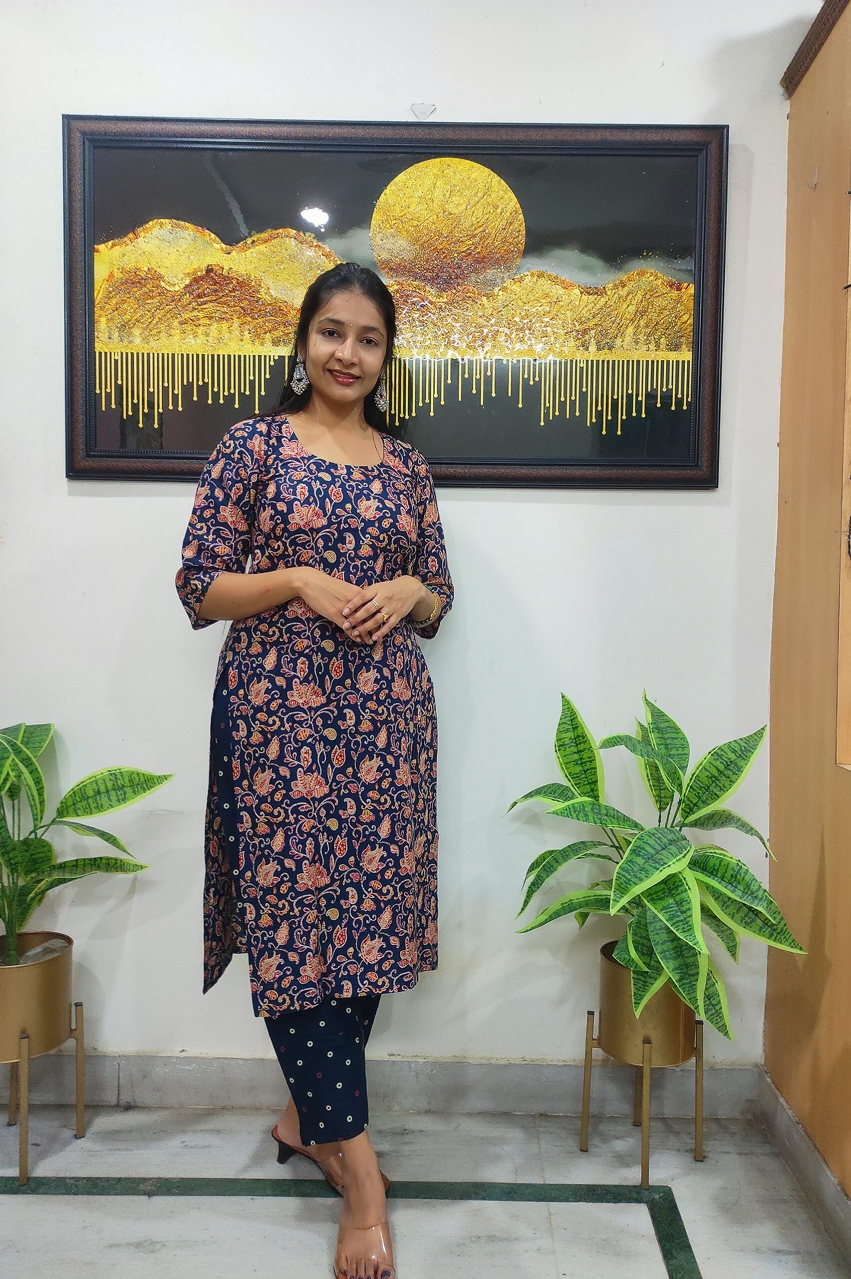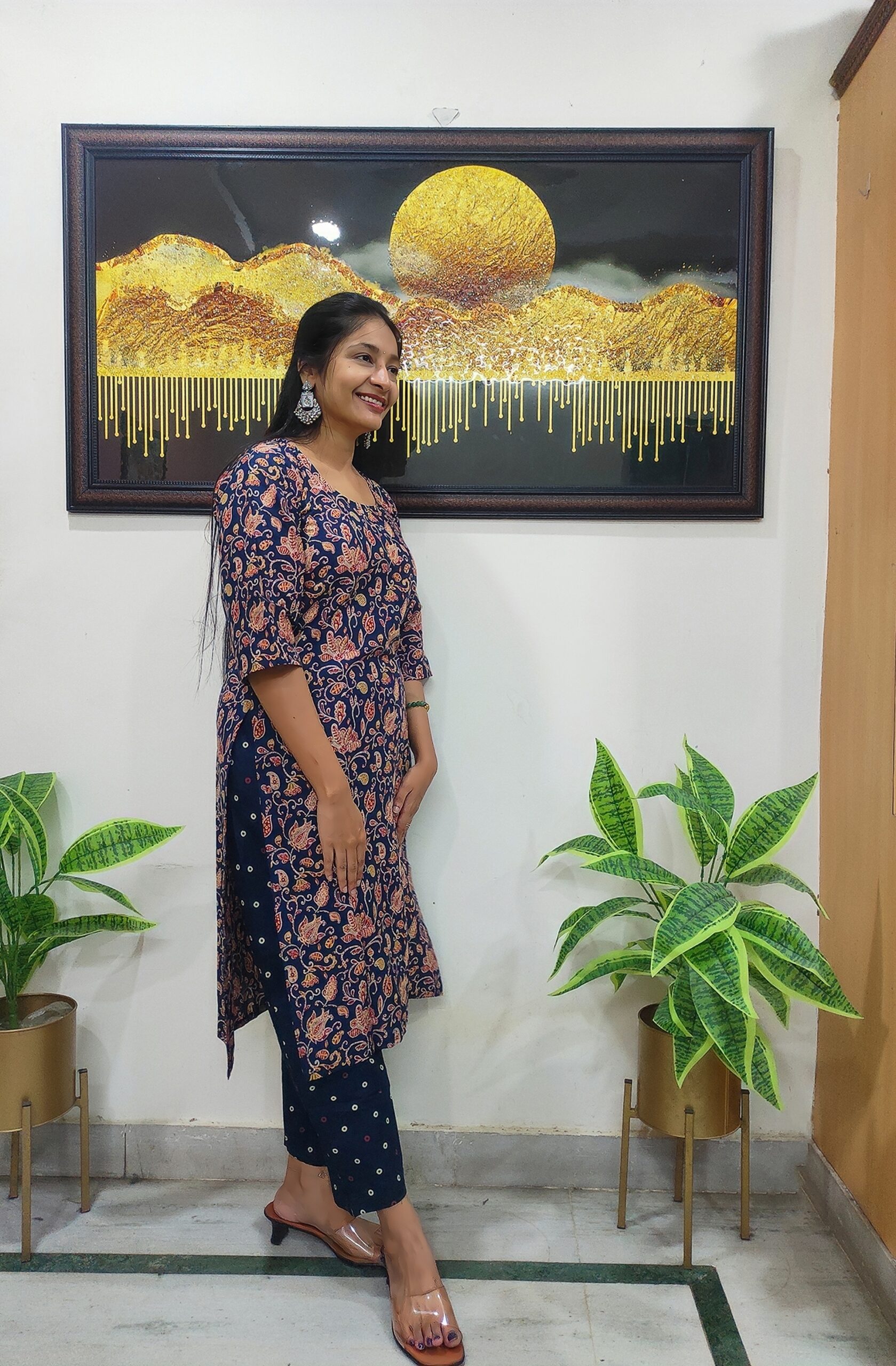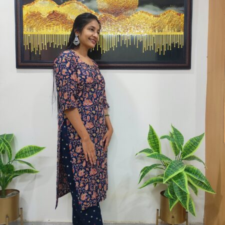 A stylish blend of deep tones and vibrant prints, this comfortable and versatile set is perfect for casual outings, office wear, or daily elegance.