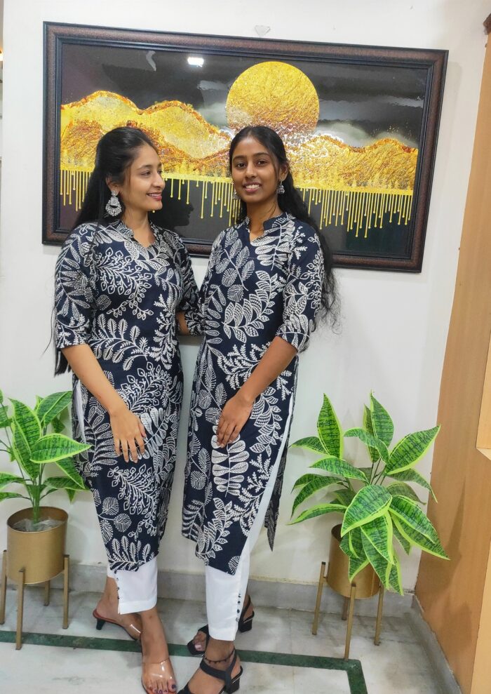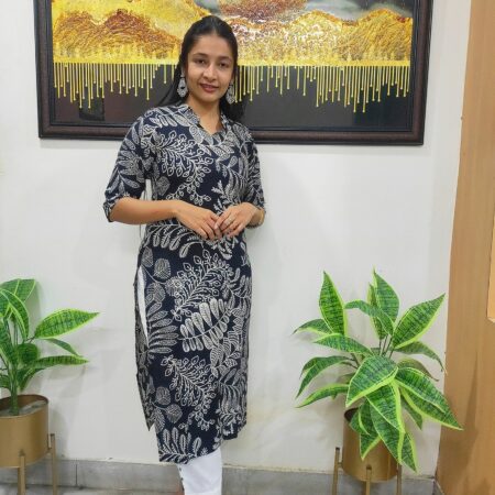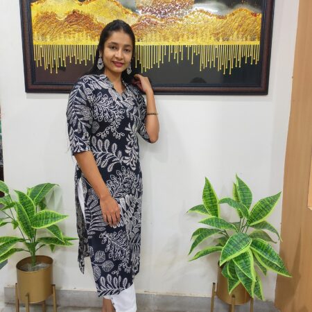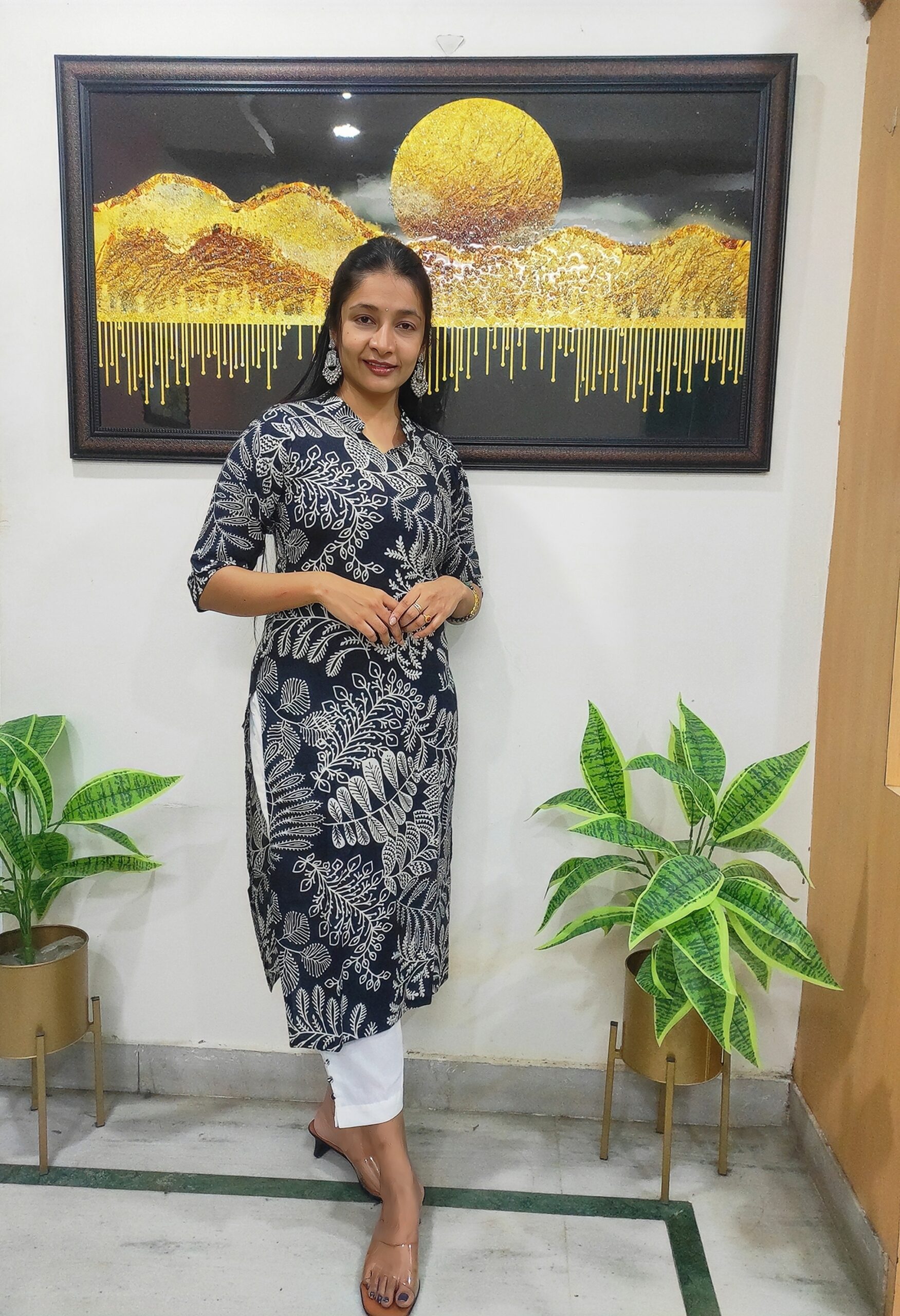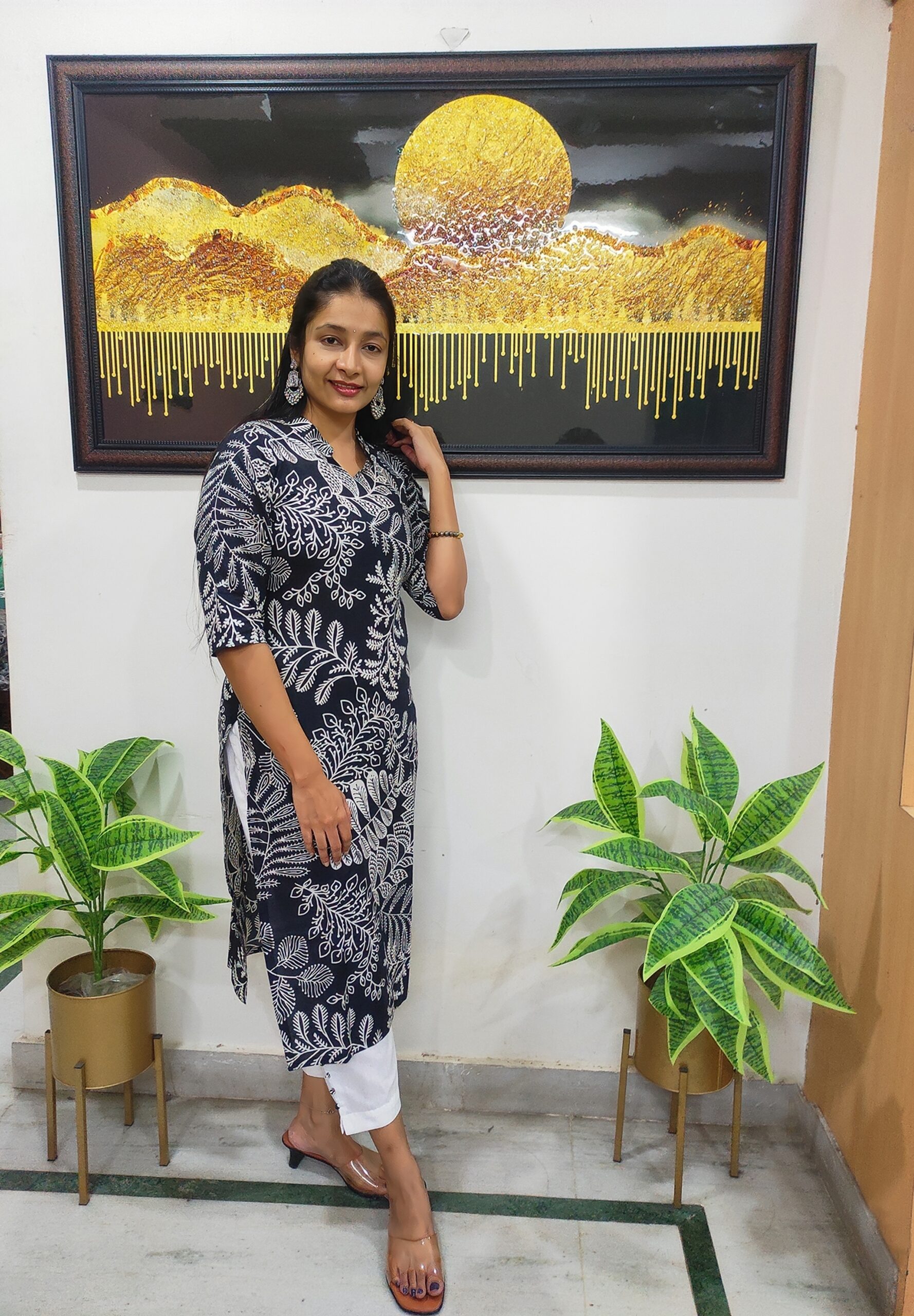 Black and White Leaf Print Collar Neck Kurta with Pant – smart, stylish, and perfect for everyday or office wear.
