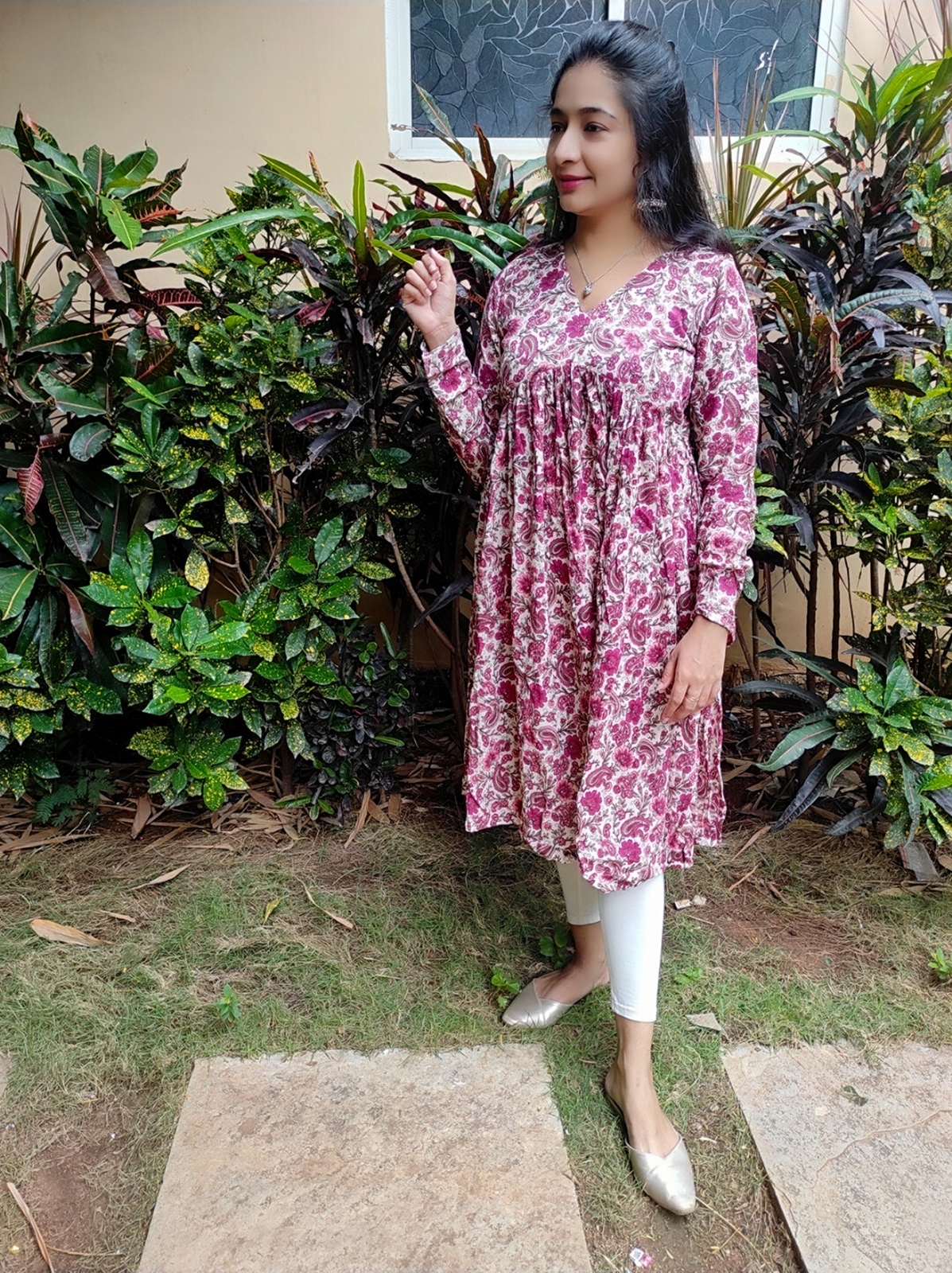 "Step into soft elegance with the Graceful Bloom Pleated Rayon Kurta—perfect for everyday charm or light festive occasions. Pair it with straight pants or Leggings,
