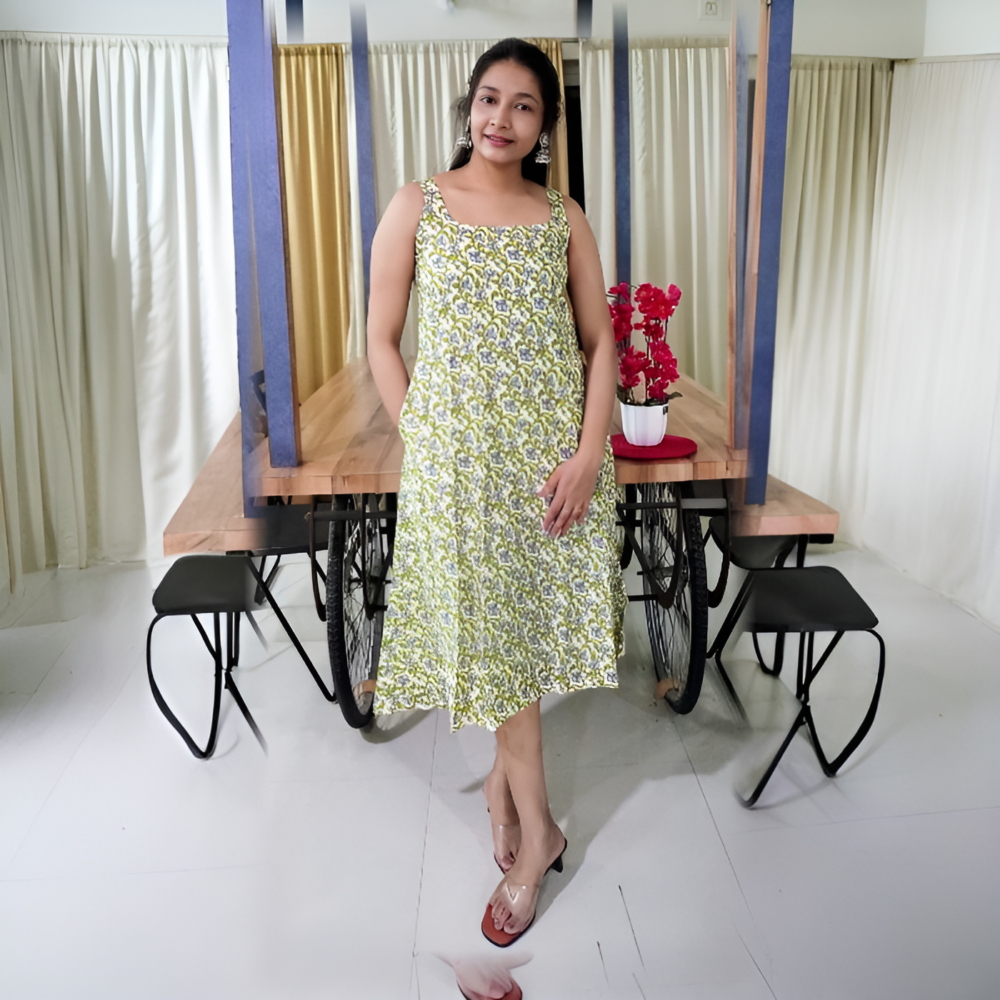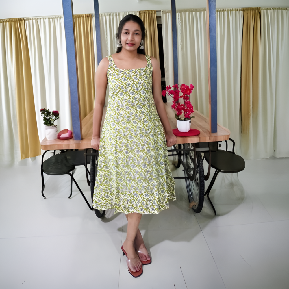 The Nature-Inspired Greenery A-Line Kurta brings a refreshing touch with its delicate leaf prints and flowy silhouette. Crafted from breathable cotton, it offers effortless elegance and all-day comfort for any occasion.