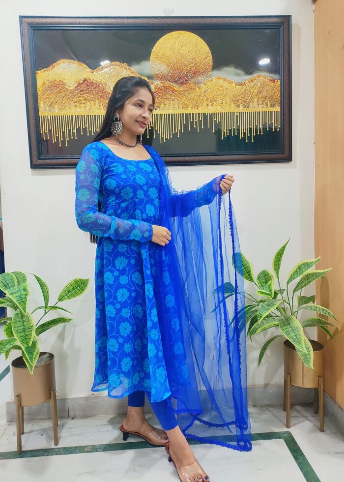 Royal Blue Georgette Printed Anarkali with Dupatta