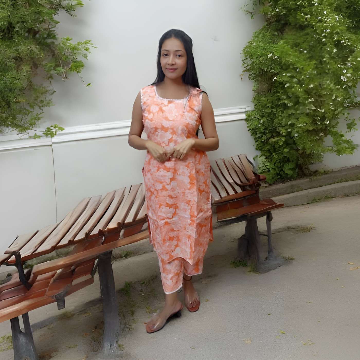 The Sunlit Bloom Floral Cord Set is a statement of grace and vibrance, featuring a refreshing orange hue adorned with delicate floral prints. Crafted from breathable fabric, it offers all-day comfort while keeping you effortlessly stylish. The coordinated design ensures a polished look, perfect for casual outings or festive gatherings. Elevate your wardrobe with this chic and lively ensemble.