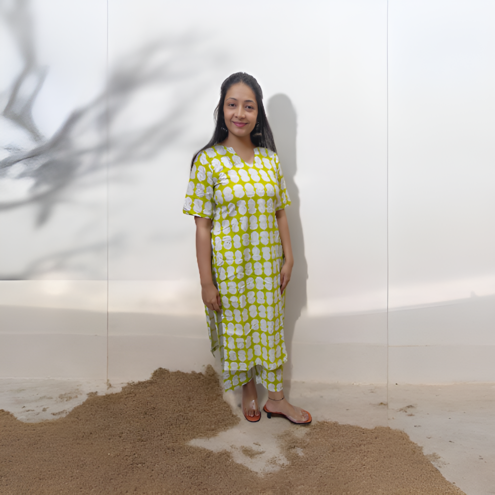 The Vibrant Neon Printed Kurta Set is a perfect blend of bold hues and intricate patterns, making it a standout ensemble. Designed for both comfort and style, it’s an ideal choice for festive and casual occasions.