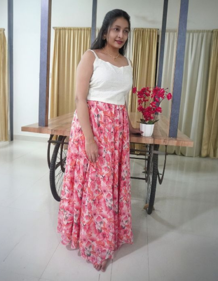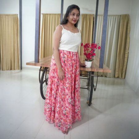 Georgette Floral Skirt with a Hakoba Sleeveless Crop-Top