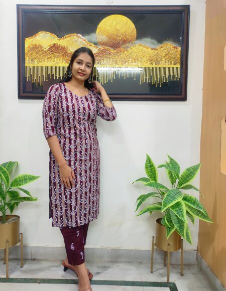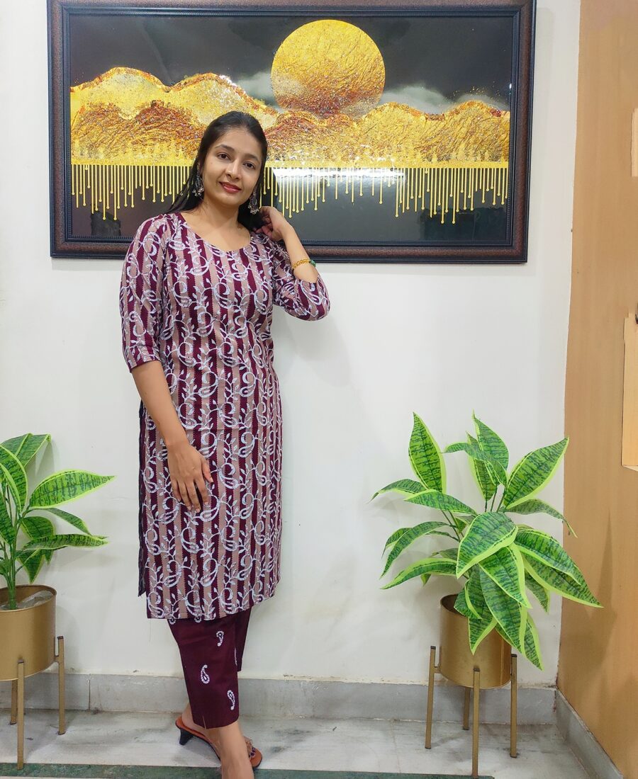 Elegant Meroon and white Mango Printed Cord Set (Kurta + Bottom)