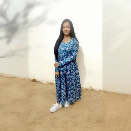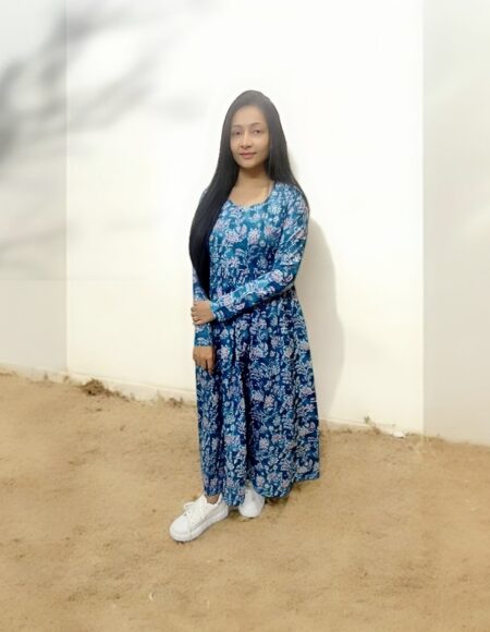 Blue Printed Cotton Full Sleeves Maxi