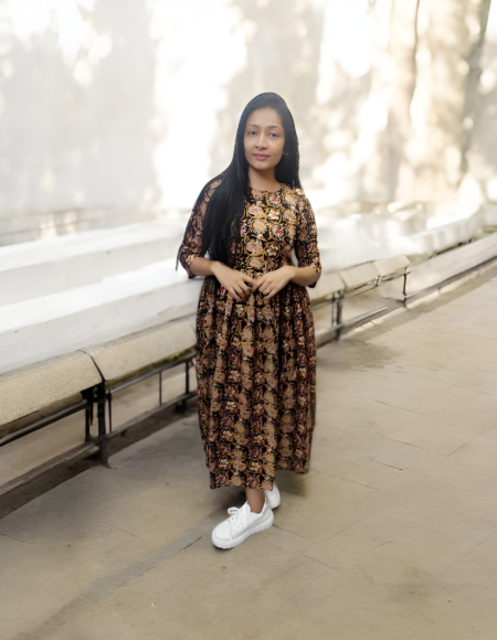 Black and Mustard Printed Maxi Dress