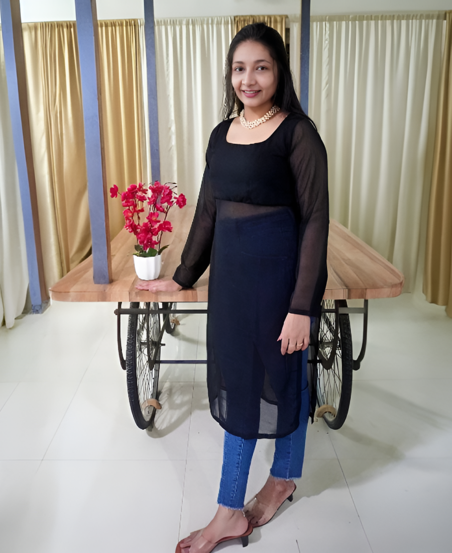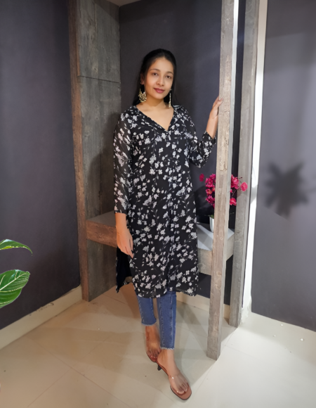 Chic Black Georgette Stylish Kurta