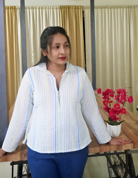 Rainbow crush zipper short top