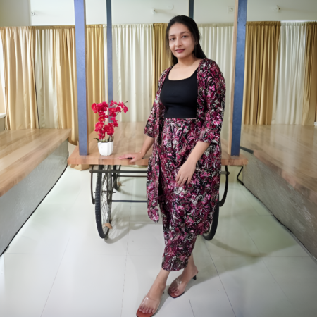 Black Multicolor Patterned Shrug and Pant Set