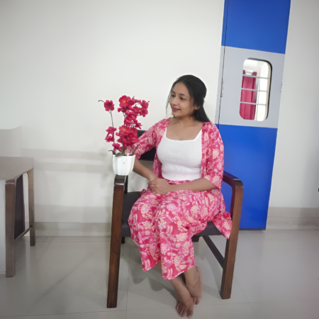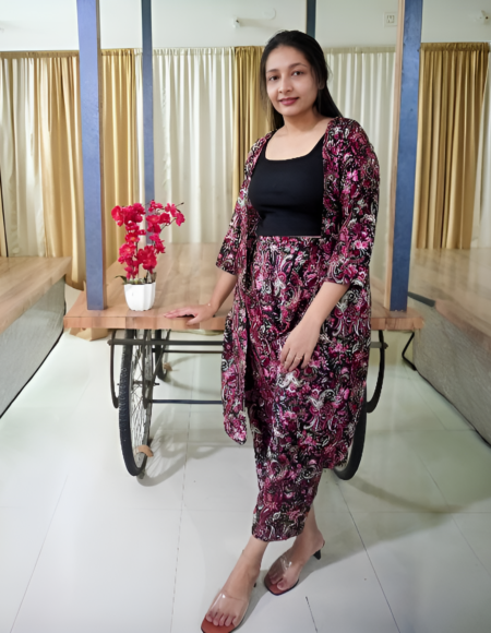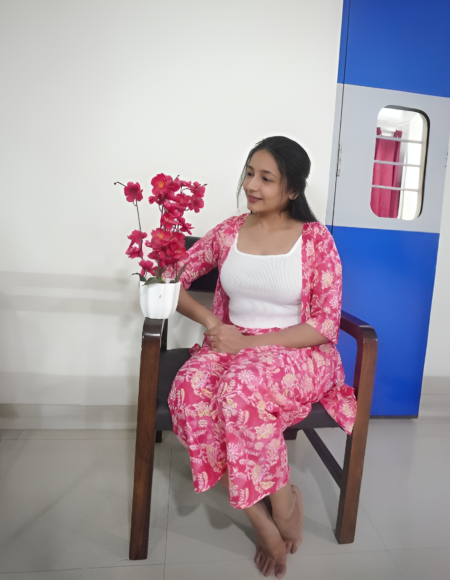 Pink Floral Cotton Shrug and Pant Set