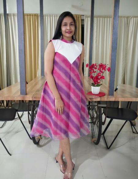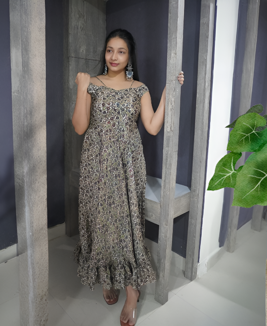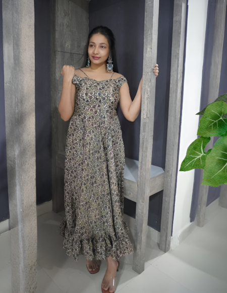 Crepe Multicolour Frilled Padded Long Frock