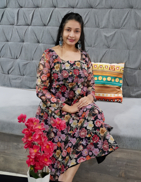 Midnight Black Multicolor Georgette Anarkali Frock