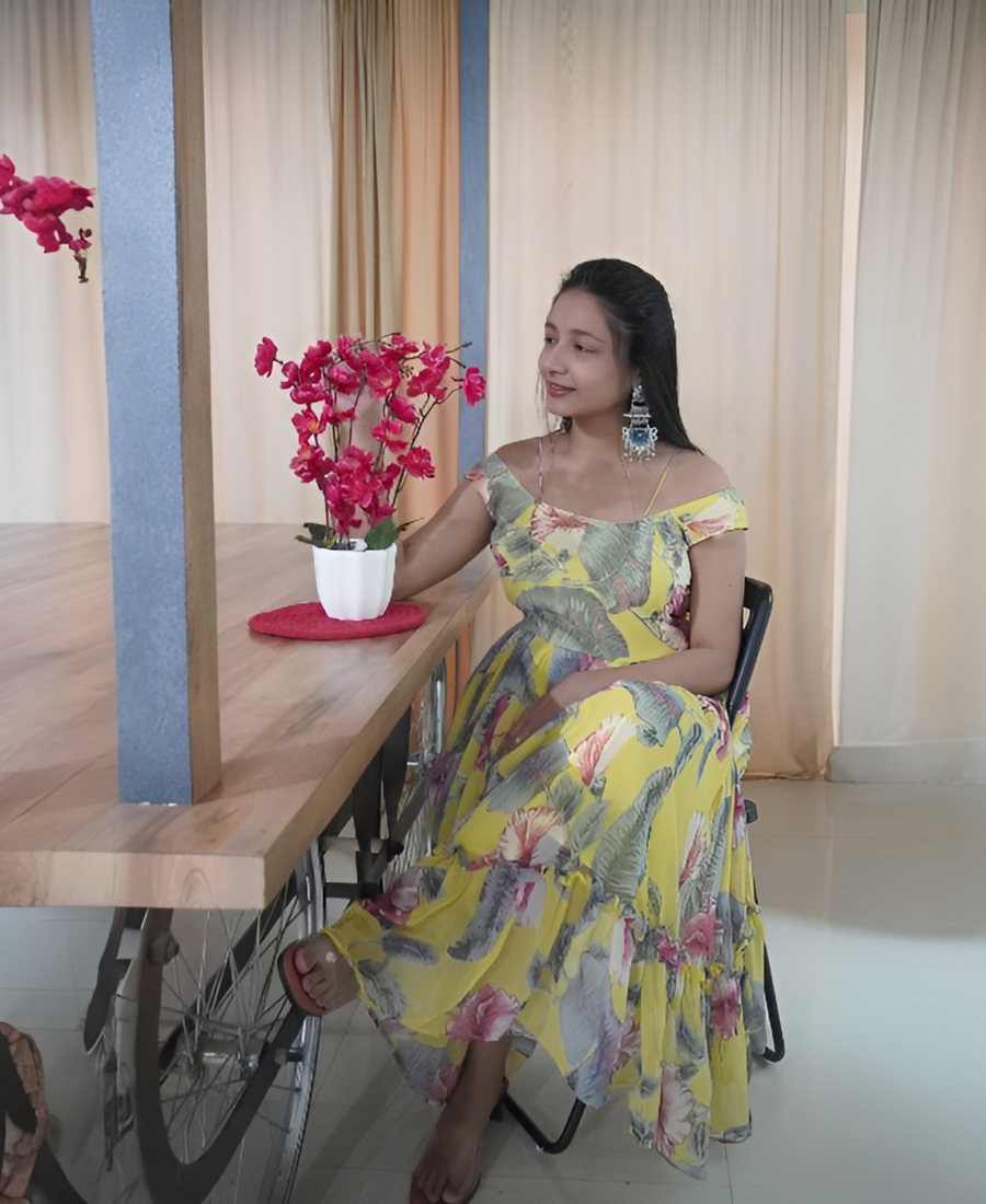 Sunshine Yellow Printed Georgette Custom Frilled Frock