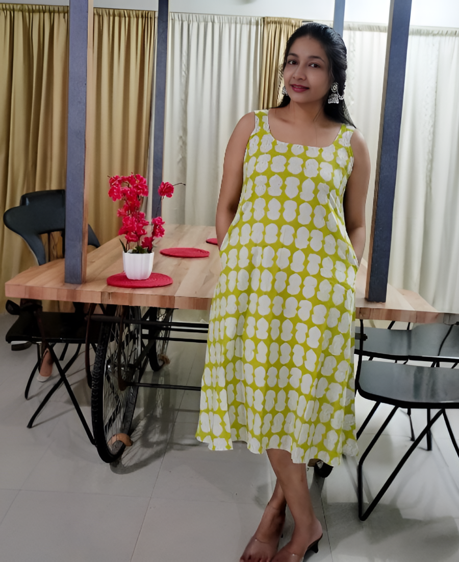 Vibrant Lime Printed A-Line Kurta