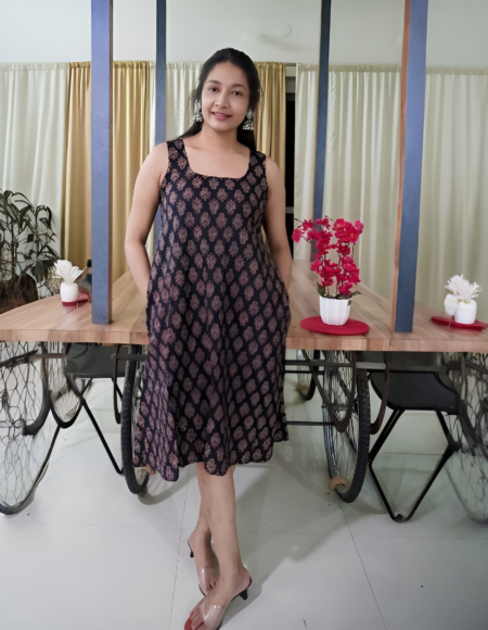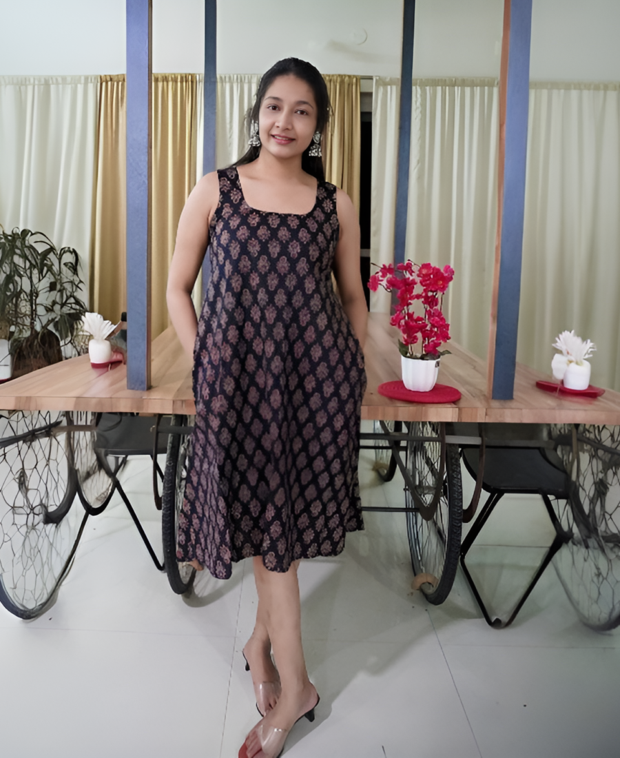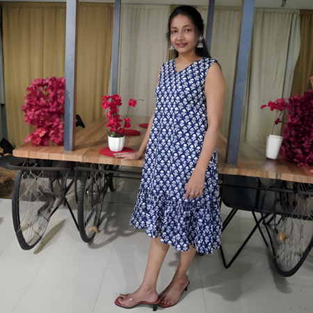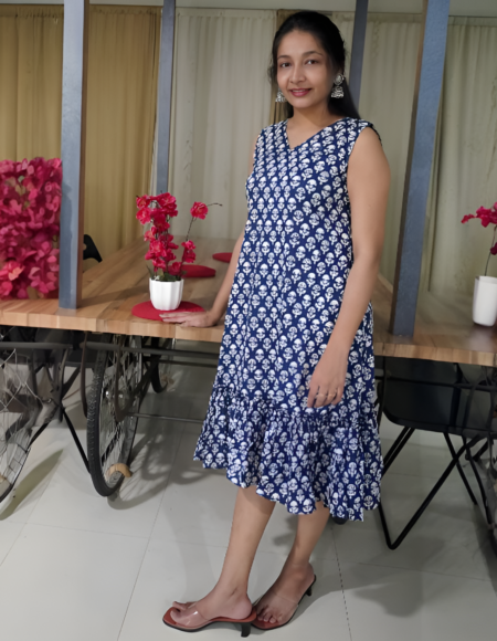 Classic Deep Blue Ethnic Print Frock