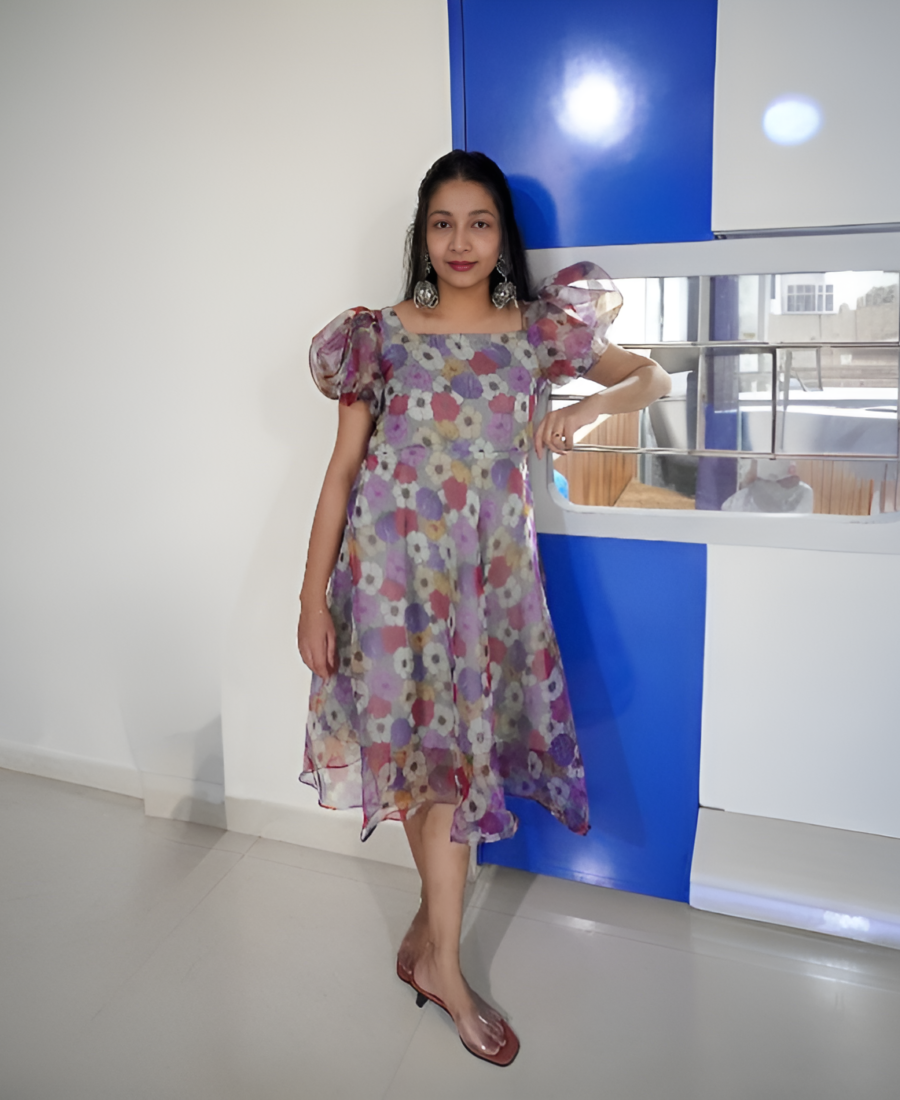 Whimsical Multicolor Organza Flared Frock